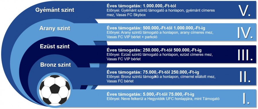Öt féle támogatási lehetőséget határoztunk meg, hogy mindenkinek megadjuk a lehetőséget a támogatásra, legyen az magánszemély vagy cég.
